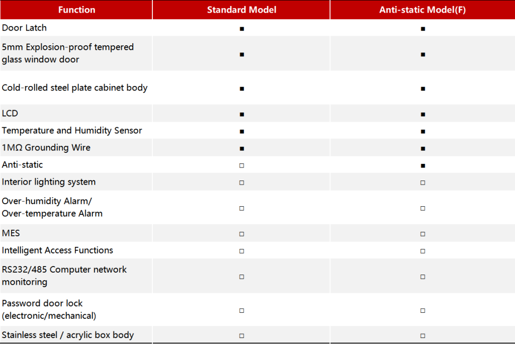 Professional anti-static model, in line with industry standards: The anti-static model cabinet coating has a conductivity coefficient of 10⁶-10⁹Ω, meeting the national and industry ESD standards such as SJ/T10694-2006 "General Specifications for Anti-static in the Production and Application System of Electronic Products".